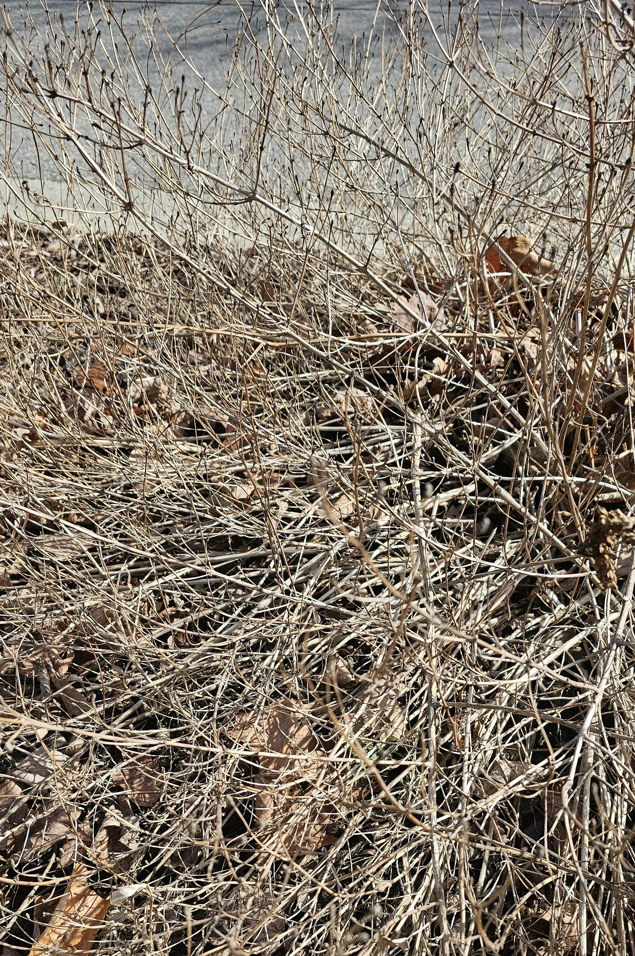 The lantana here has died back for the winter with only its slender branches remaining. My neighbors would typically cut back something like this and clear all the debris away. I cut all the twigs and broke them up into smaller nest-building size sections. It only took a few minutes. Notice that I left the leaves on the ground to house bugs for the birds to eat.