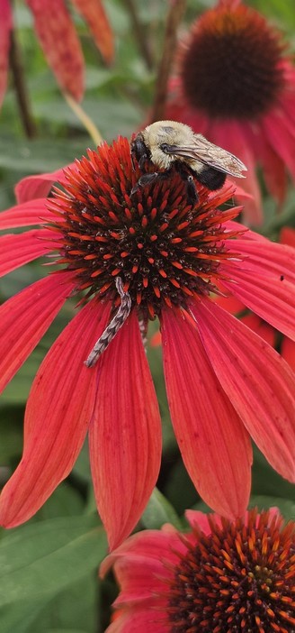 In a garden bed that contains perennials, there was a spot for annuals where I started growing native Coneflowers. These attracted many pollinators, caterpillars and, once seeds emerged, Goldfinches. When designing, select plants that support more species.